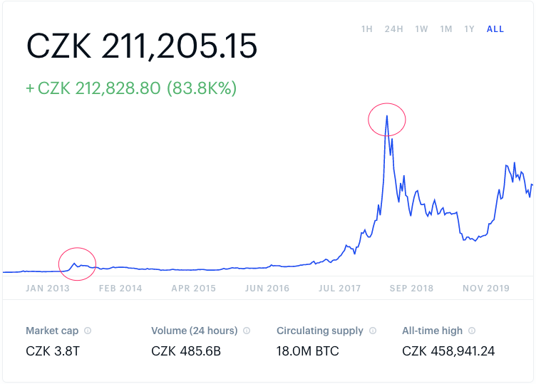 Bitcoin Aktualni A Historicke Ceny Kryptomeny Bitcoin Graf Vyvoje Ceny Kryptomeny Bitcoin 10 Let Mena Czk Kurzy Cz